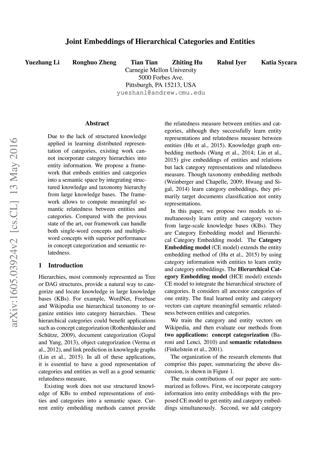 Joint Embeddings of Hierarchical Categories and Entities