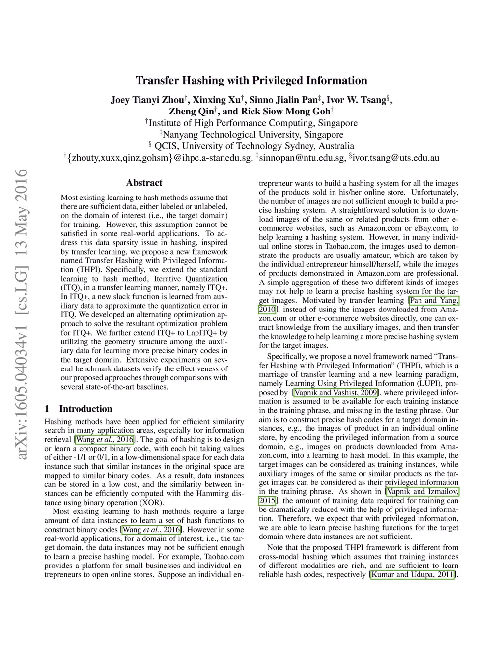 Transfer Hashing with Privileged Information