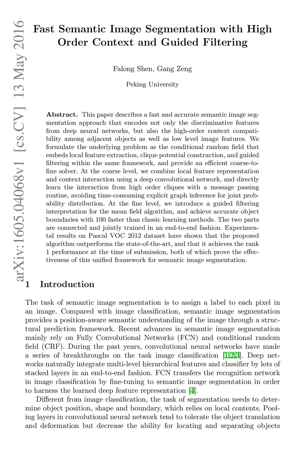 Fast Semantic Image Segmentation with High Order Context and Guided