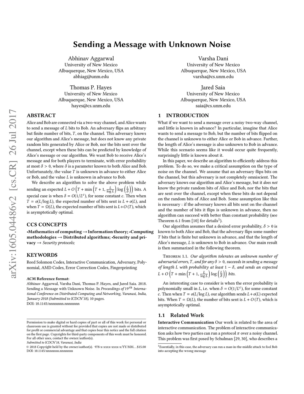 Alice and Bob are connected via a two-way channel, and Alice wants to send a message of bits to Bob. An adversary flips an arbitrary but finite number of bits, , on the channel. This adversary knows our algorithm and Alice's message, but does not know any private random bits generated by Alice or Bob, nor the bits sent over the channel, except when these bits can be predicted by knowledge of Alice's message or our algorithm. We want Bob to receive Alice's message and for both players to terminate, with error probability at most , where is a parameter known to both Alice and Bob. Unfortunately, the value is unknown in advance to either Alice or Bob, and the value is unknown in advance to Bob. We describe an algorithm to solve the above problem while sending an expected bits. A special case is when , for some constant . Then when , the expected number of bits sent is , and when , the expected number of bits sent is , which is asymptotically optimal.