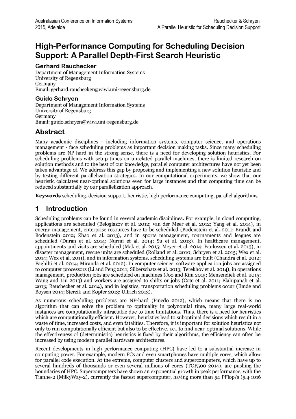 High-Performance Computing for Scheduling Decision Support: A Parallel