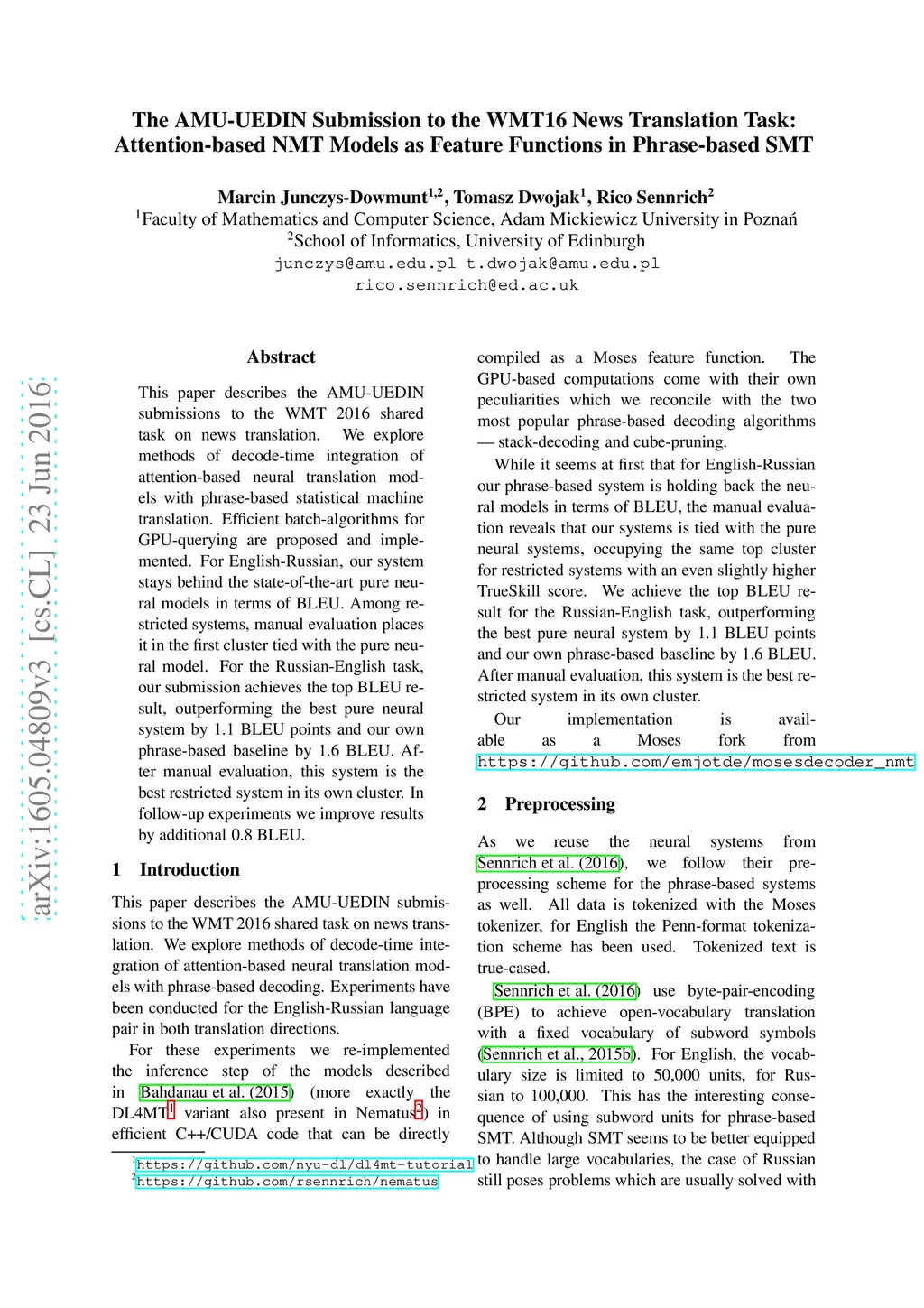 The AMU-UEDIN Submission to the WMT16 News Translation Task: