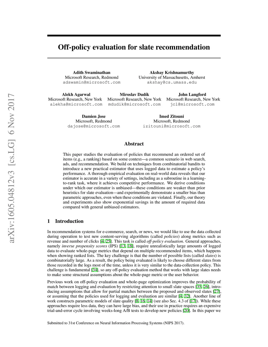 Off-policy evaluation for slate recommendation