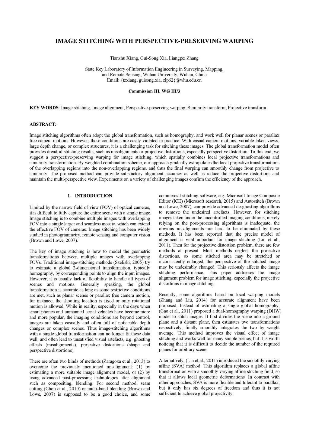 Image stitching algorithms often adopt the global transformation, such as homography, and work well for planar scenes or parallax free camera motions. However, these conditions are easily violated in practice. With casual camera motions, variable taken views, large depth change, or complex structures, it is a challenging task for stitching these images. The global transformation model often provides dreadful stitching results, such as misalignments or projective distortions, especially perspective distortion. To this end, we suggest a perspective-preserving warping for image stitching, which spatially combines local projective transformations and similarity transformation. By weighted combination scheme, our approach gradually extrapolates the local projective transformations of the overlapping regions into the non-overlapping regions, and thus the final warping can smoothly change from projective to similarity. The proposed method can provide satisfactory alignment accuracy as well as reduce the projective distortions and maintain the multi-perspective view. Experiments on a variety of challenging images confirm the efficiency of the approach.