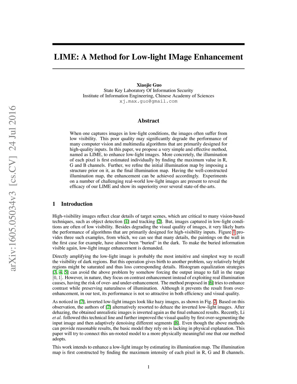 When one captures images in low-light conditions, the images often suffer from low visibility. This poor quality may significantly degrade the performance of many computer vision and multimedia algorithms that are primarily designed for high-quality inputs. In this paper, we propose a very simple and effective method, named as LIME, to enhance low-light images. More concretely, the illumination of each pixel is first estimated individually by finding the maximum value in R, G and B channels. Further, we refine the initial illumination map by imposing a structure prior on it, as the final illumination map. Having the well-constructed illumination map, the enhancement can be achieved accordingly. Experiments on a number of challenging real-world low-light images are present to reveal the efficacy of our LIME and show its superiority over several state-of-the-arts.