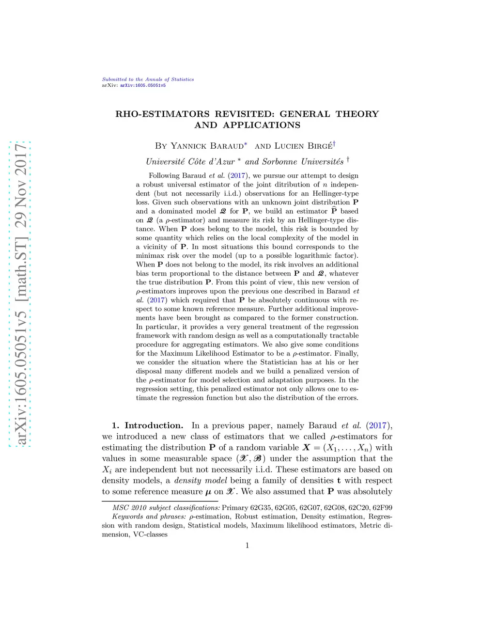 Following Baraud, Birg{\'e} and Sart (2014), we pursue our attempt to design a universal and robust estimation method based on independent (but not necessarily i.i.d.) observations. Given such observations with an unknown joint distribution P and a dominated model for P, we build an estimator P based on and measure its risk by an Hellinger-type distance. When P does belong to the model, this risk is bounded by some new notion of dimension which relies on the local complexity of the model in a vicinity of P. In most situations this bound corresponds to the minimax risk over the model (up to a possible logarithmic factor). When P does not belong to the model, its risk involves an additional bias term proportional to the distance between P and , whatever the true distribution P. From this point of view, this new version of -estimators improves upon the previous one described in Baraud, Birg{\'e} and Sart (2014) which required that P be absolutely continuous with respect to some known reference measure. Further additional improvements have been brought compared to the former construction. In particular, it provides a very general treatment of the regression framework with random design as well as a computationally tractable procedure for aggregating estimators. Finally, we consider the situation where the Statistician has at disposal many different models and we build a penalized version of the -estimator for model selection and adaptation purposes. In the regression setting, this penalized estimator not only allows to estimate the regression function but also the distribution of the errors.