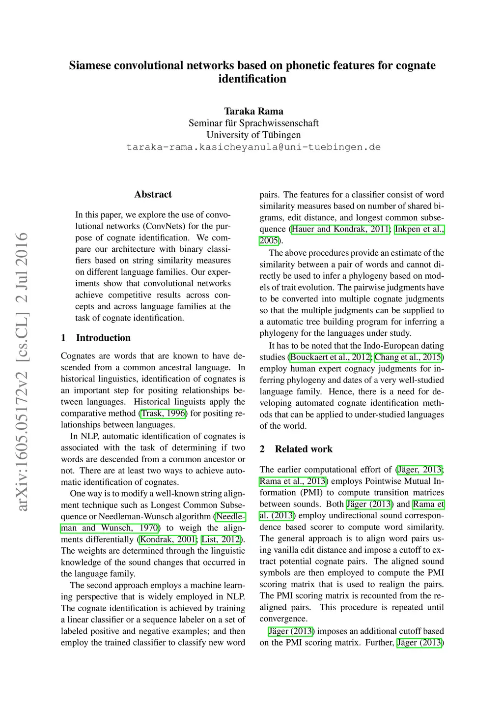Siamese convolutional networks based on phonetic features for cognate