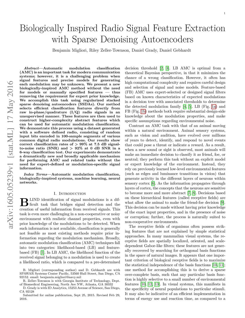 Biologically Inspired Radio Signal Feature Extraction with Sparse