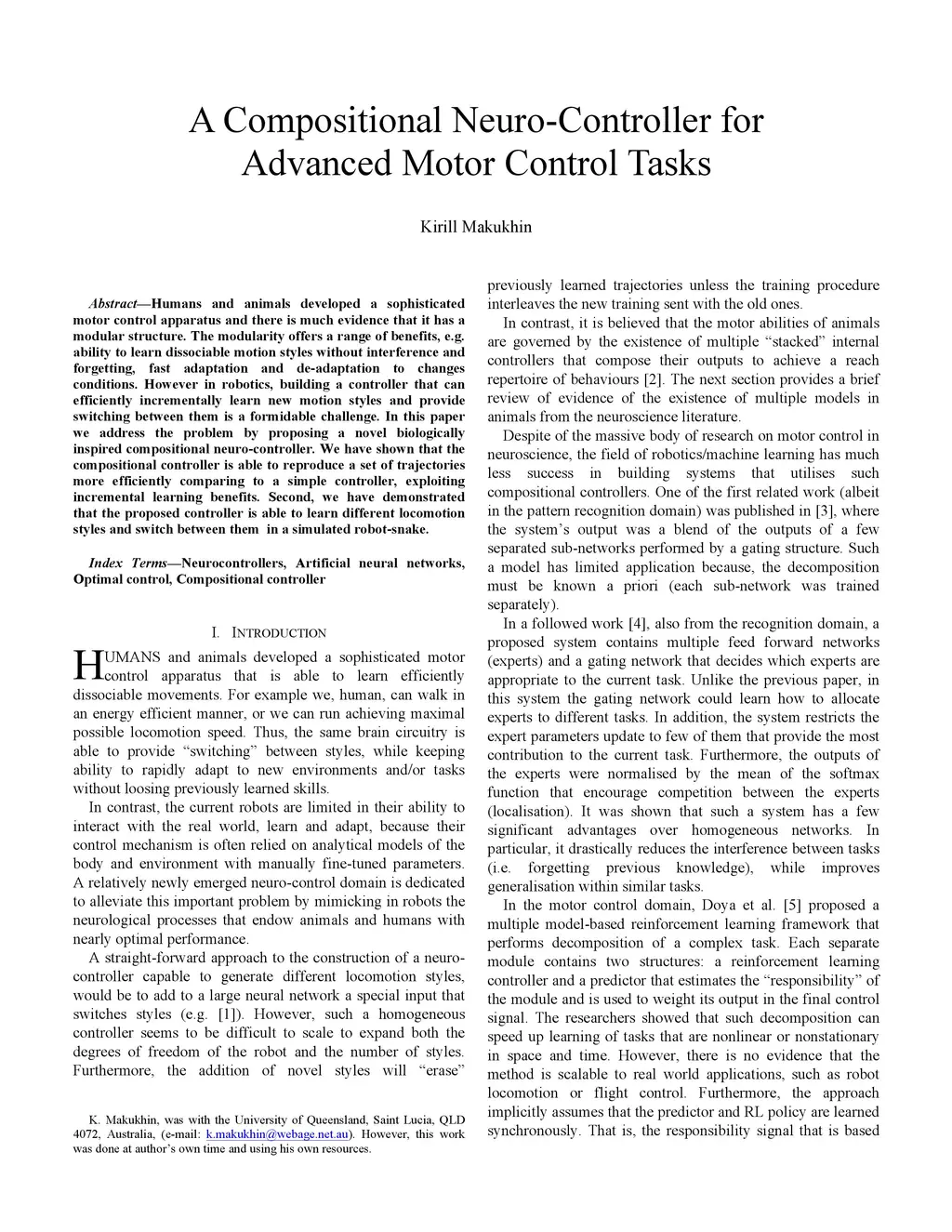 A Compositional Neuro-Controller for Advanced Motor Control Tasks