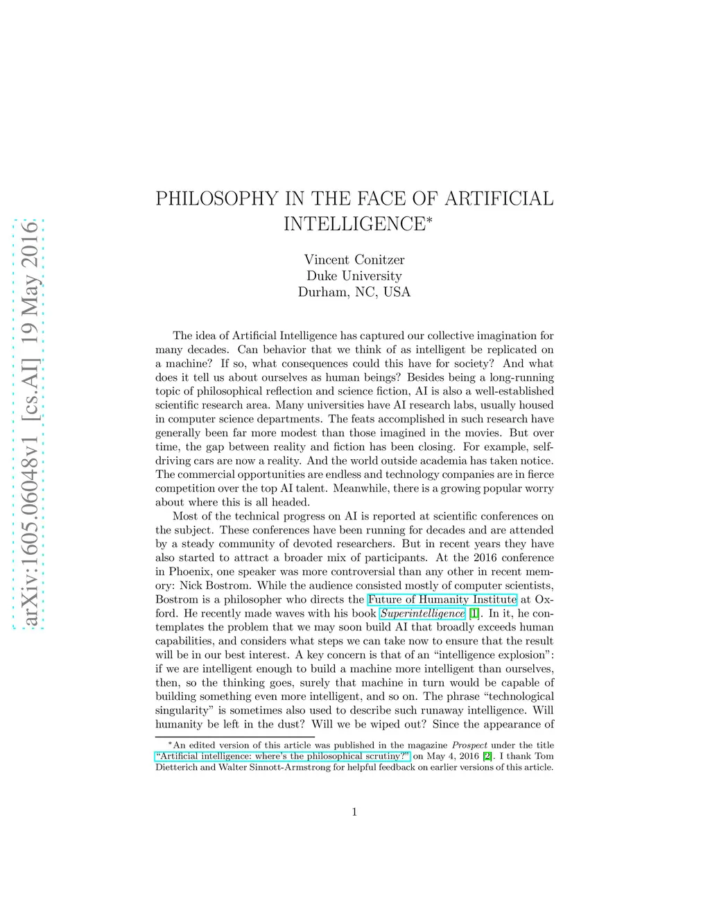 Philosophy in the Face of Artificial Intelligence