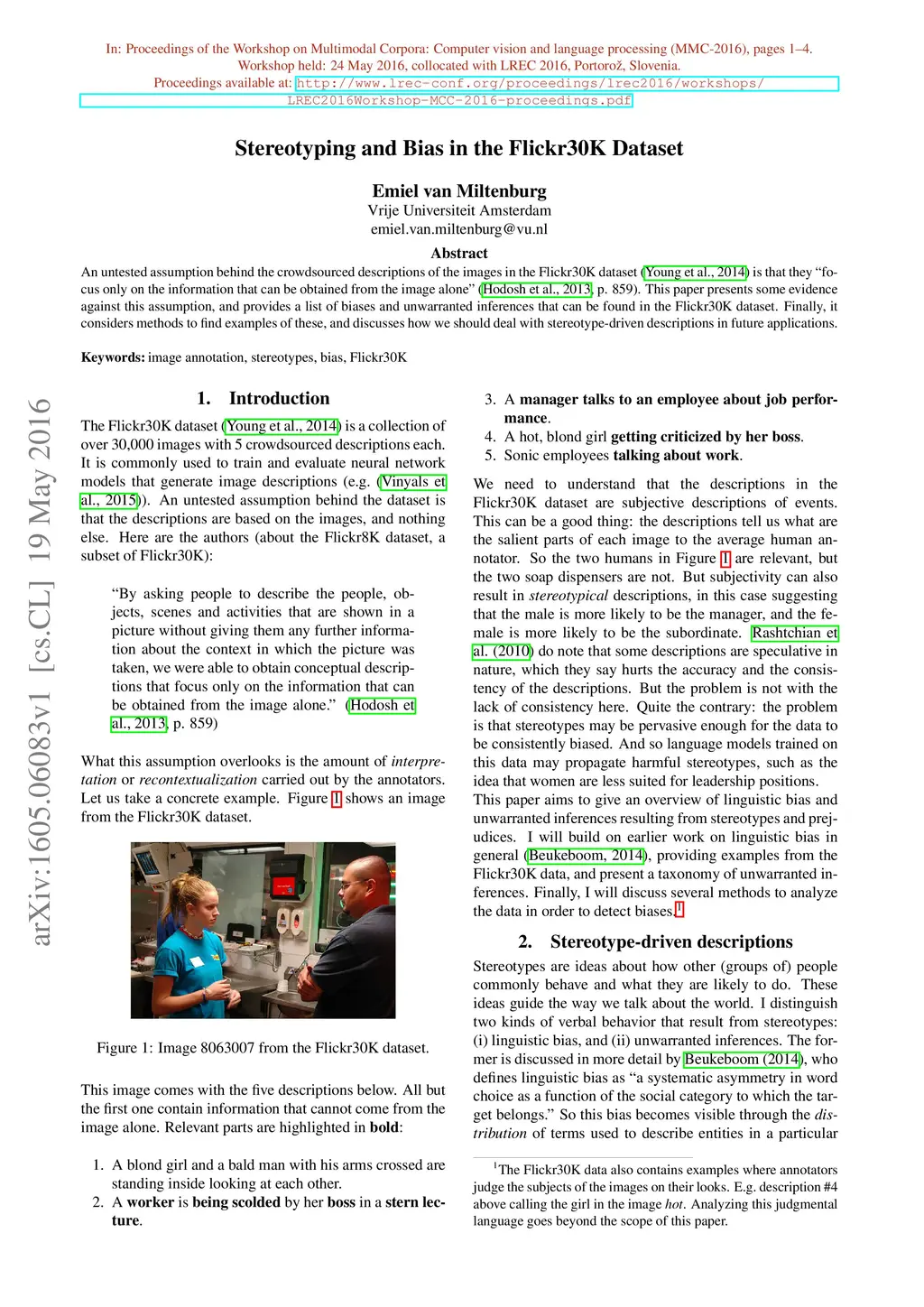 Stereotyping and Bias in the Flickr30K Dataset