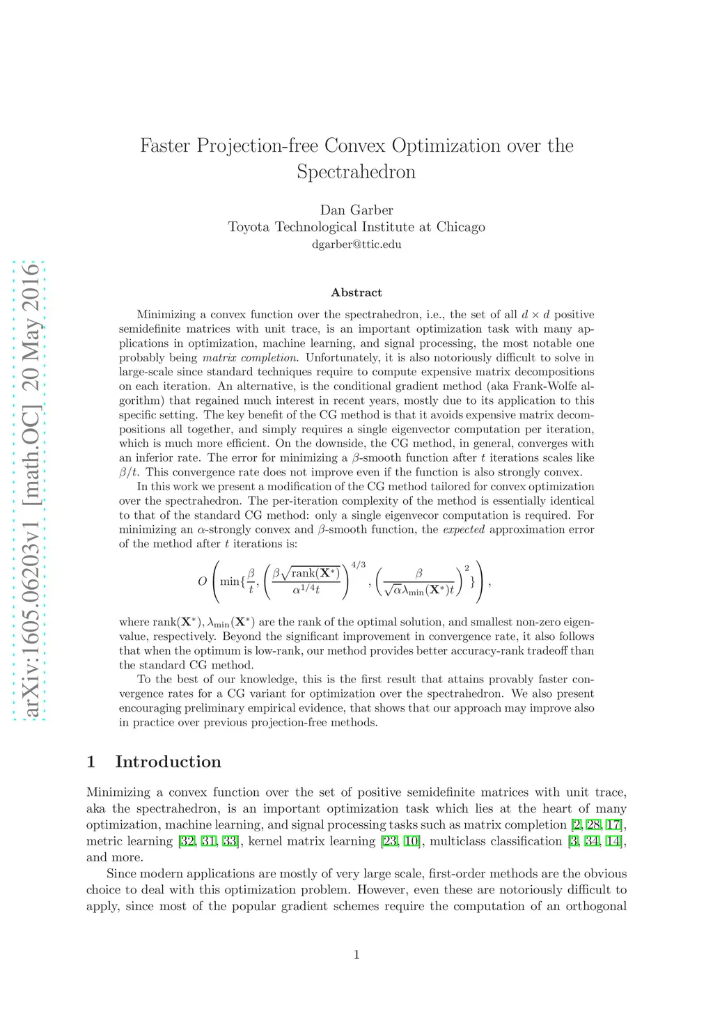 Minimizing a convex function over the spectrahedron, i.e., the set of all positive semidefinite matrices with unit trace, is an important optimization task with many applications in optimization, machine learning, and signal processing. It is also notoriously difficult to solve in large-scale since standard techniques require expensive matrix decompositions. An alternative, is the conditional gradient method (aka Frank-Wolfe algorithm) that regained much interest in recent years, mostly due to its application to this specific setting. The key benefit of the CG method is that it avoids expensive matrix decompositions all together, and simply requires a single eigenvector computation per iteration, which is much more efficient. On the downside, the CG method, in general, converges with an inferior rate. The error for minimizing a -smooth function after iterations scales like . This convergence rate does not improve even if the function is also strongly convex. In this work we present a modification of the CG method tailored for convex optimization over the spectrahedron. The per-iteration complexity of the method is essentially identical to that of the standard CG method: only a single eigenvecor computation is required. For minimizing an -strongly convex and -smooth function, the expected approximation error of the method after iterations is: where is the optimal solution. To the best of our knowledge, this is the first result that attains provably faster convergence rates for a CG variant for optimization over the spectrahedron. We also present encouraging preliminary empirical results.