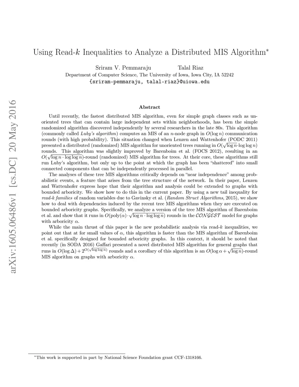 Using Read- Inequalities to Analyze a Distributed MIS Algorithm