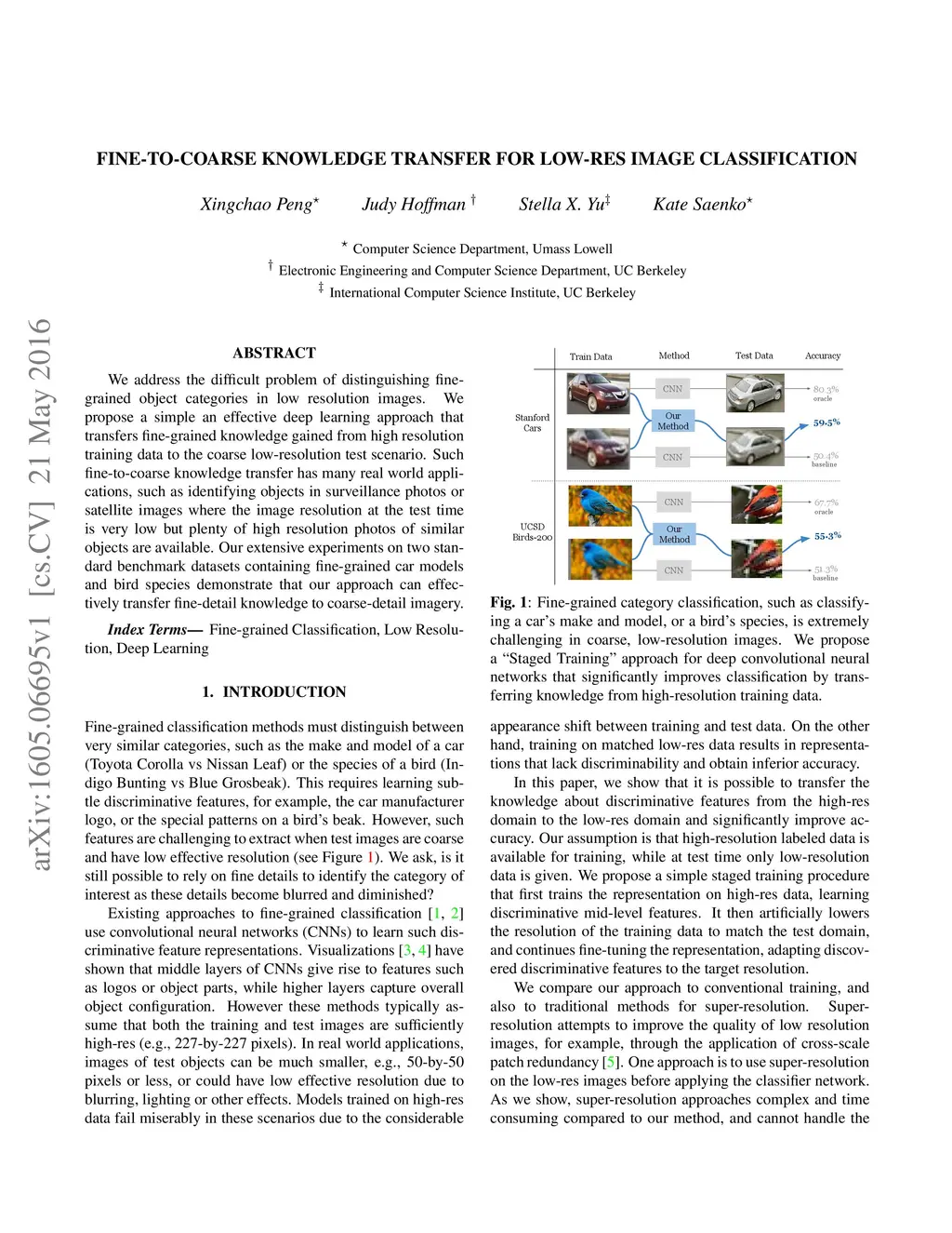 Fine-to-coarse Knowledge Transfer For Low-Res Image Classification