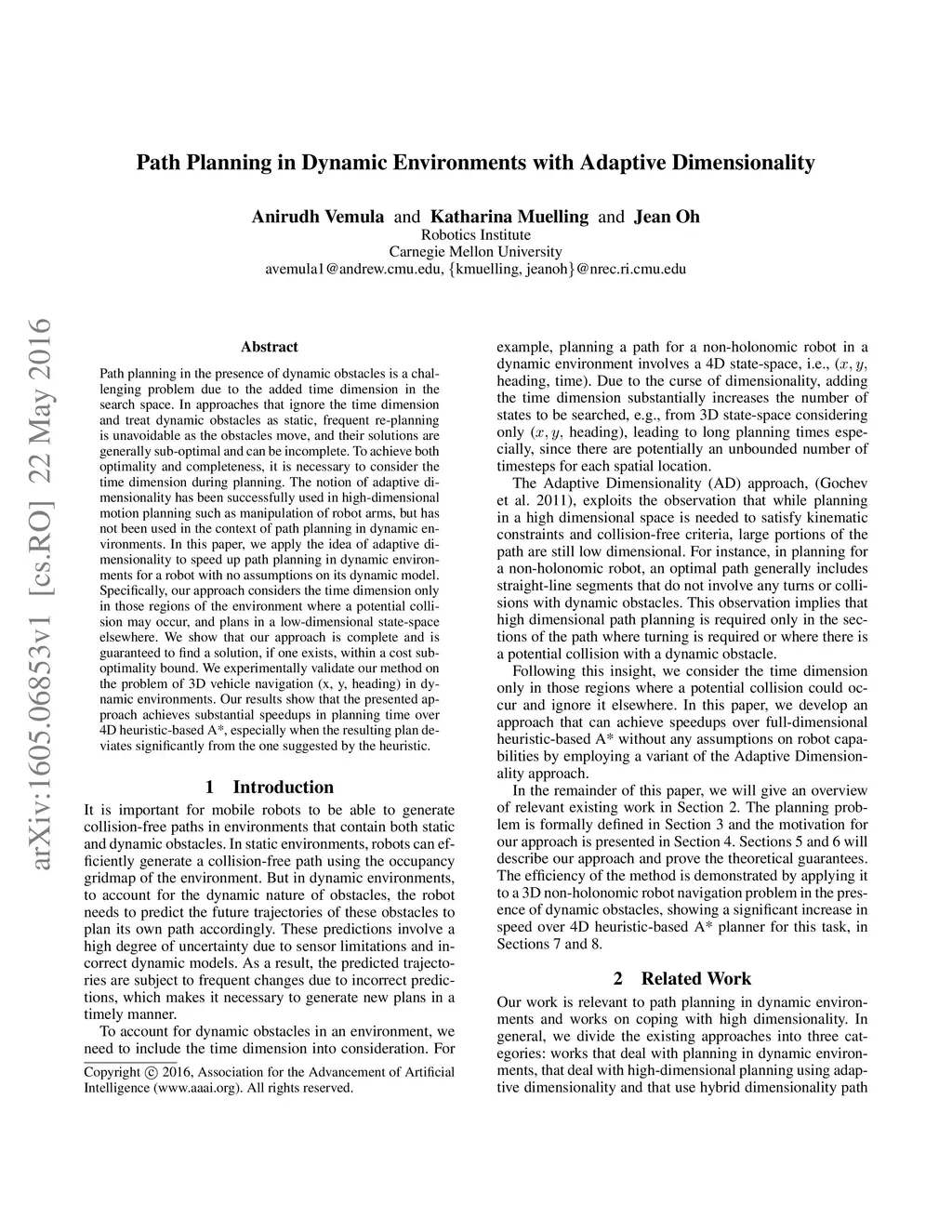 Path Planning in Dynamic Environments with Adaptive Dimensionality