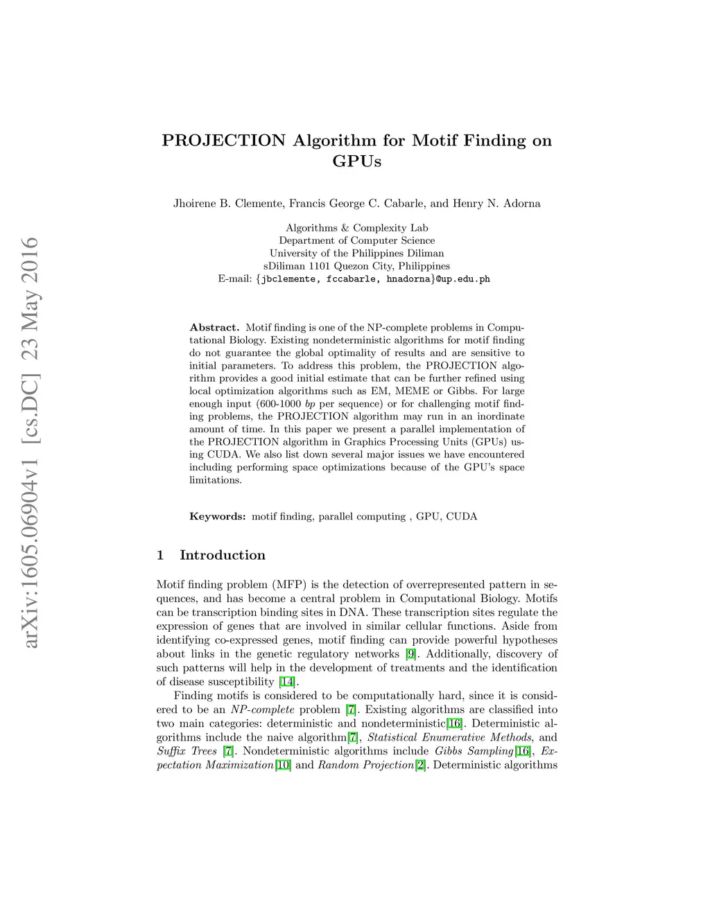 PROJECTION Algorithm for Motif Finding on GPUs
