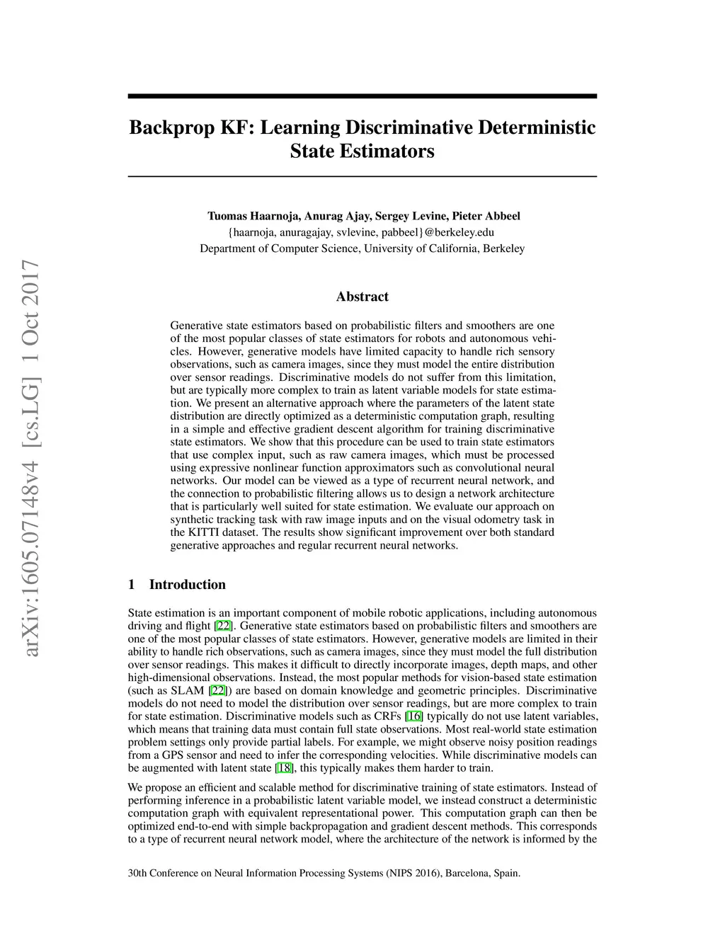 Backprop KF: Learning Discriminative Deterministic State Estimators