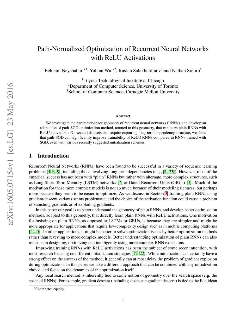 Path-Normalized Optimization of Recurrent Neural Networks with ReLU