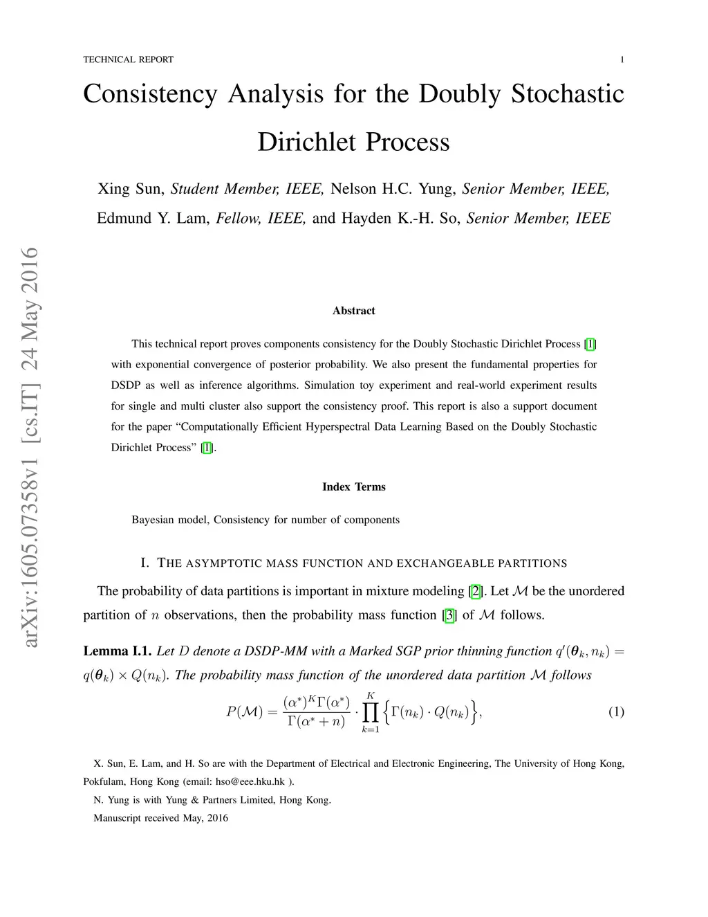 This technical report proves components consistency for the Doubly Stochastic Dirichlet Process with exponential convergence of posterior probability. We also present the fundamental properties for DSDP as well as inference algorithms. Simulation toy experiment and real-world experiment results for single and multi-cluster also support the consistency proof. This report is also a support document for the paper "Computationally Efficient Hyperspectral Data Learning Based on the Doubly Stochastic Dirichlet Process".