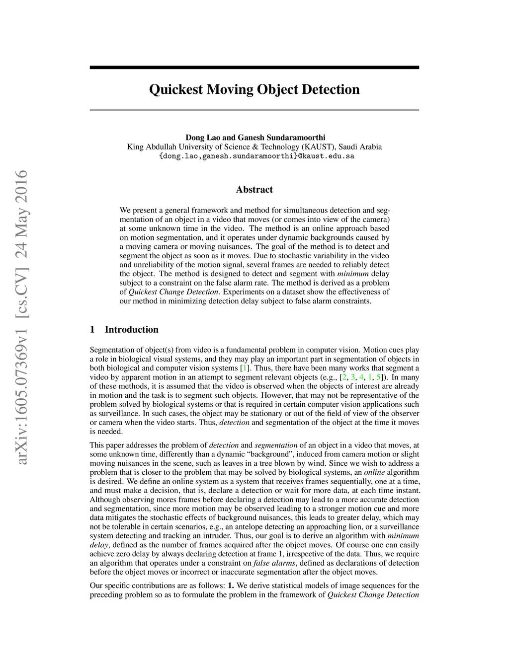 Quickest Moving Object Detection