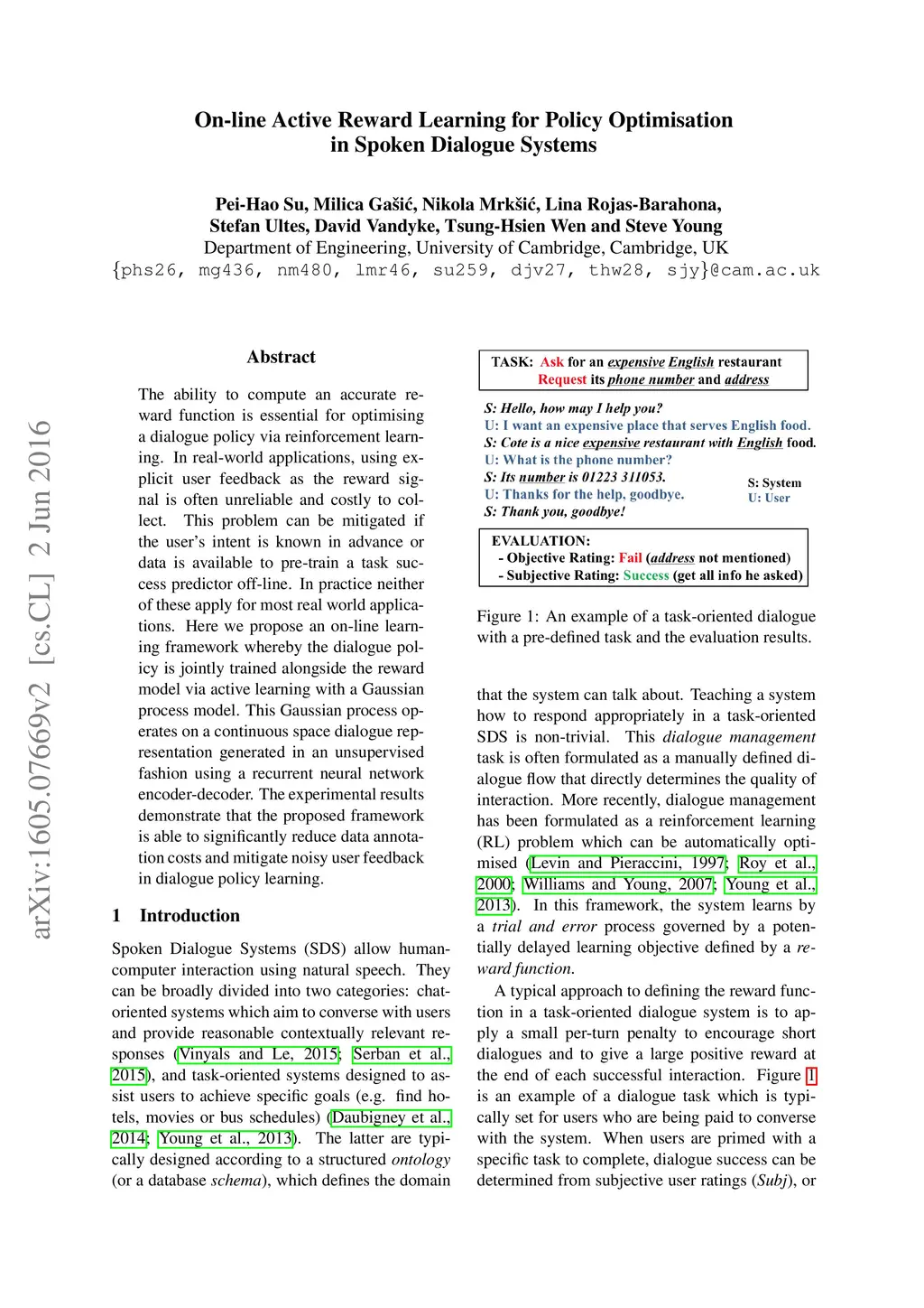 On-line Active Reward Learning for Policy Optimisation in Spoken