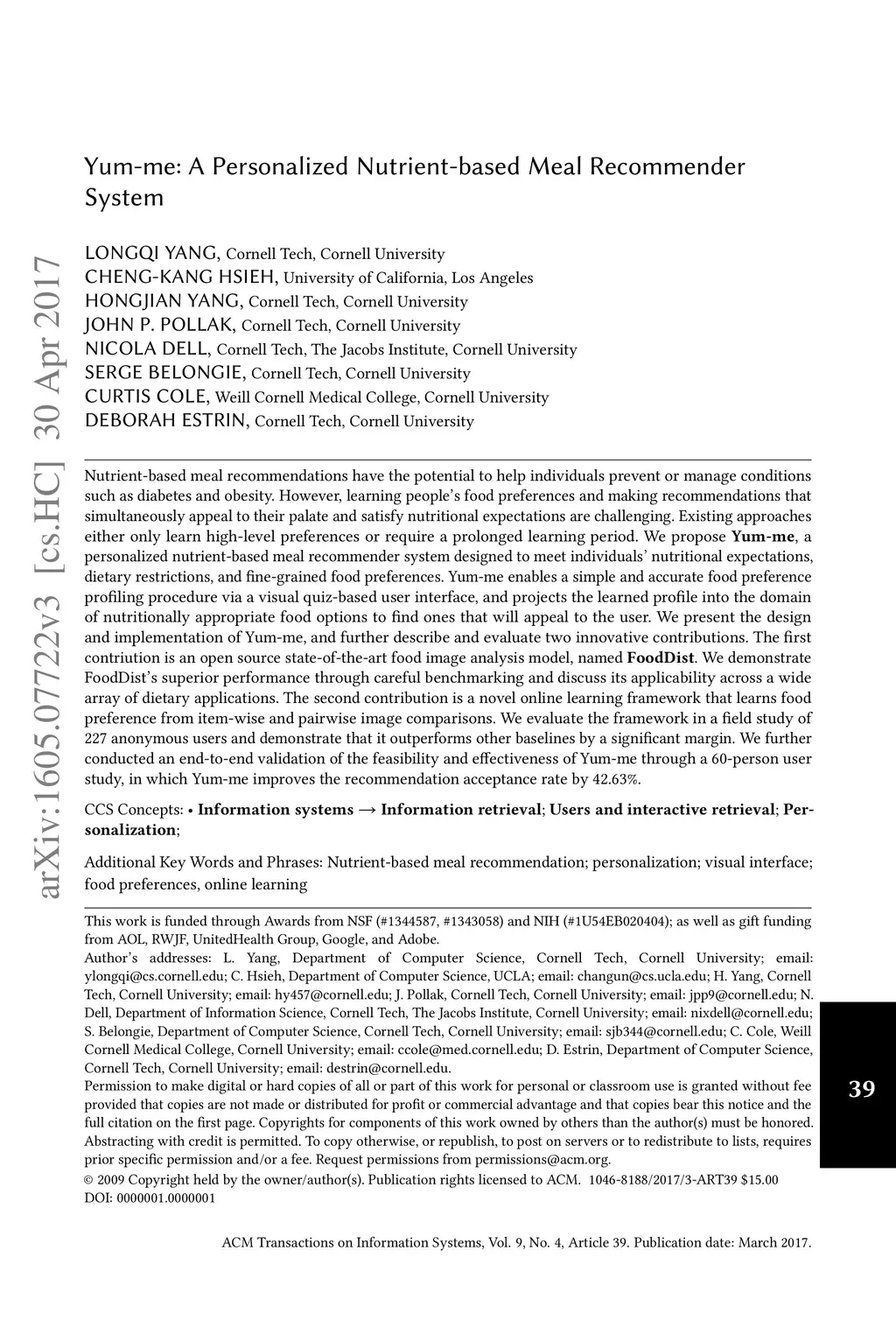 Yum-me: A Personalized Nutrient-based Meal Recommender System