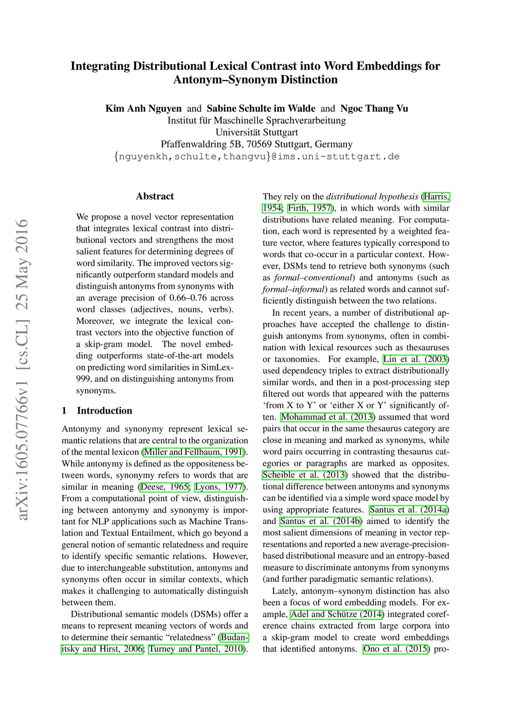 Integrating Distributional Lexical Contrast into Word Embeddings for