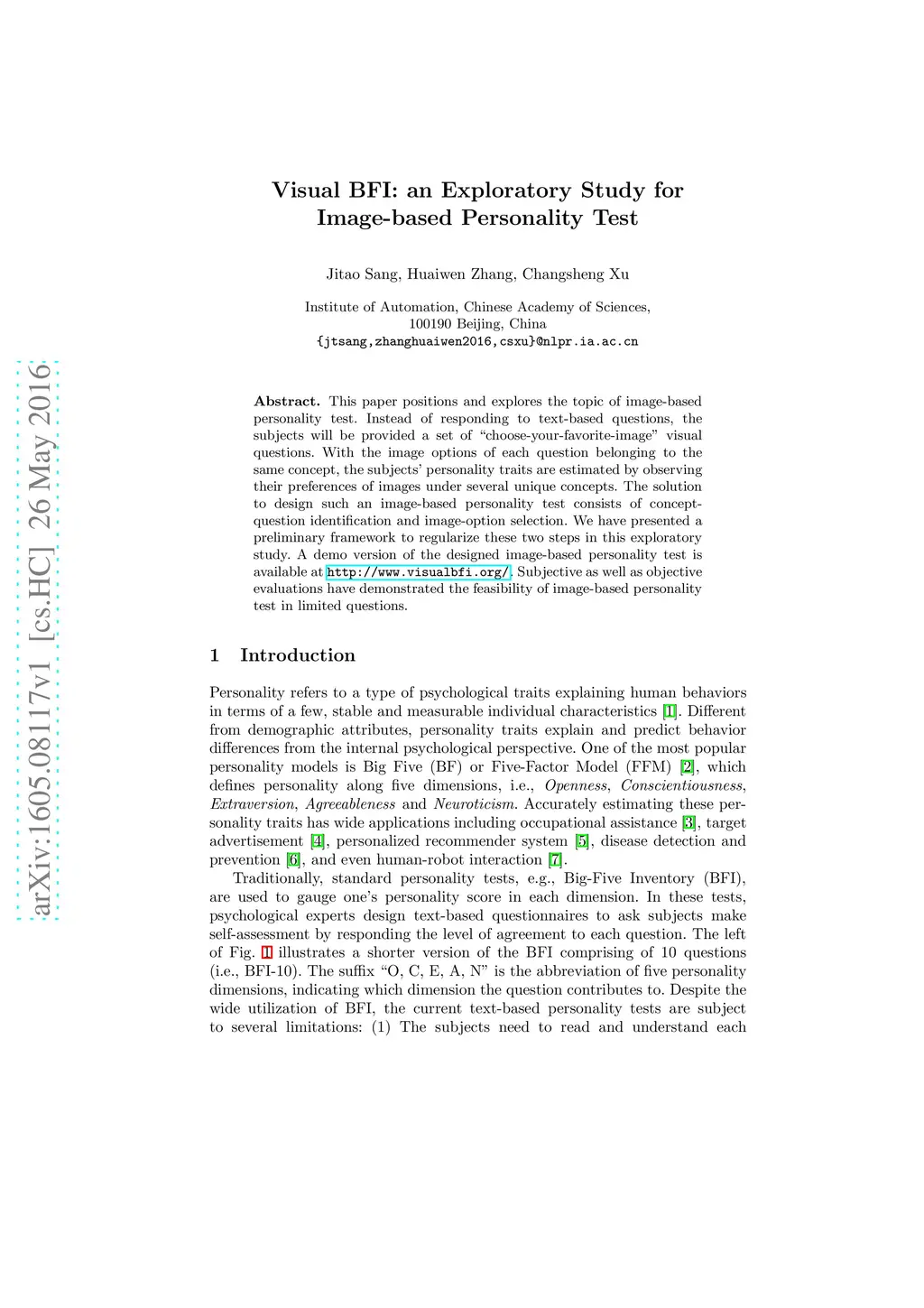 Visual BFI: an Exploratory Study for Image-based Personality Test