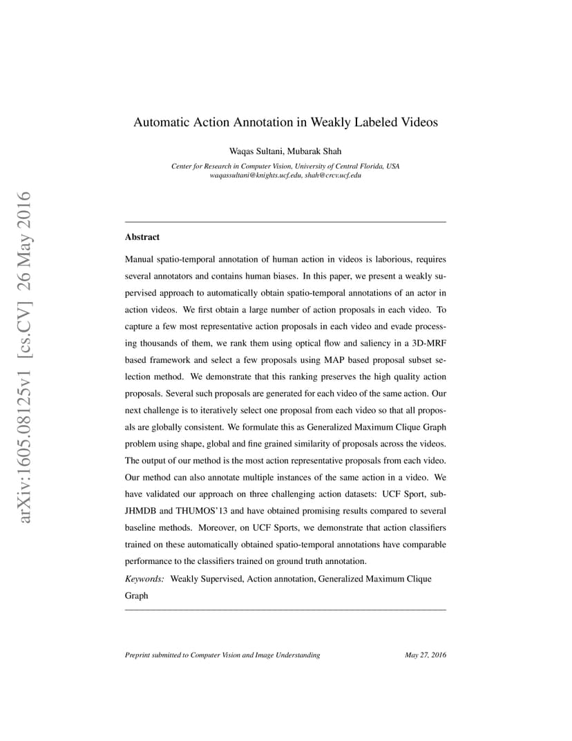 Automatic Action Annotation in Weakly Labeled Videos