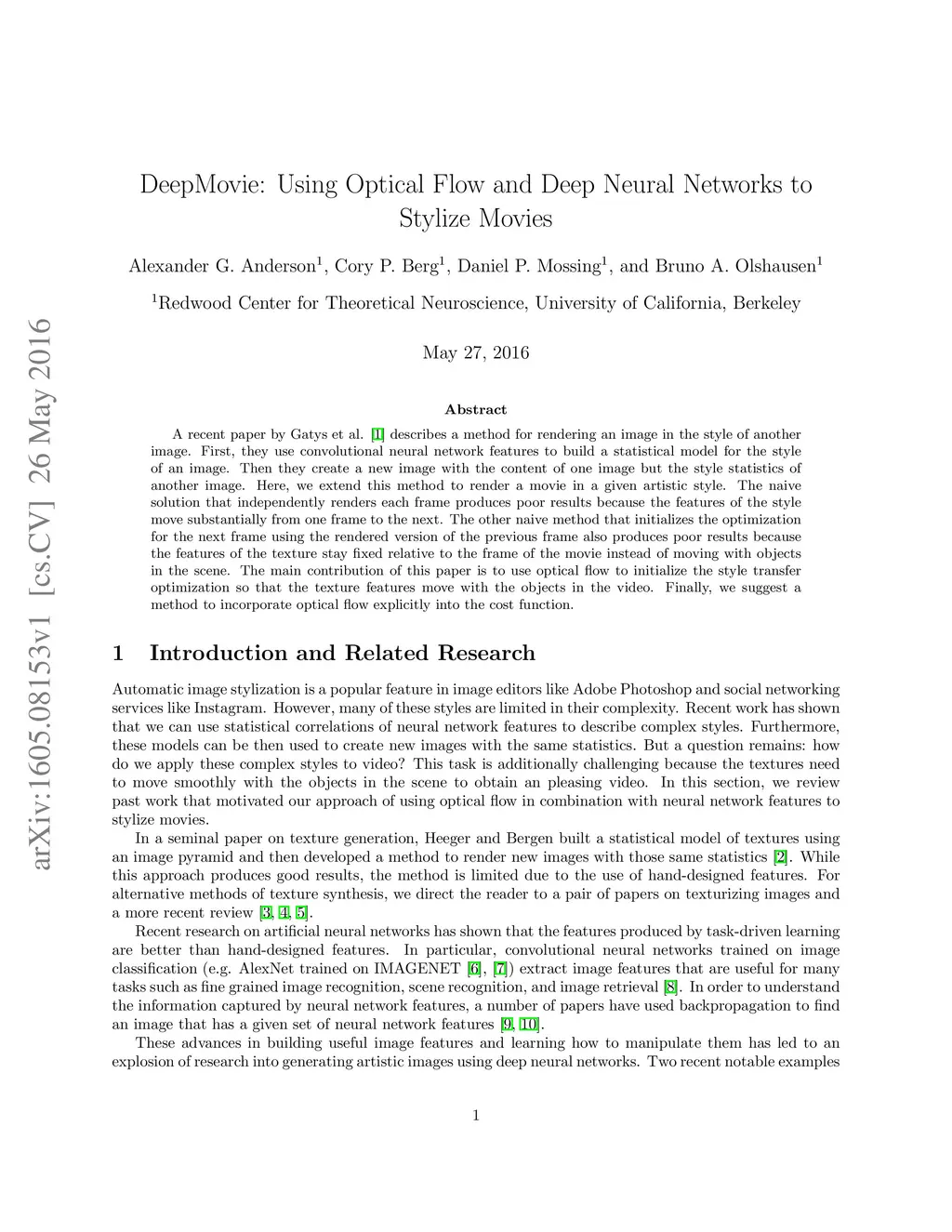 DeepMovie: Using Optical Flow and Deep Neural Networks to Stylize Movies