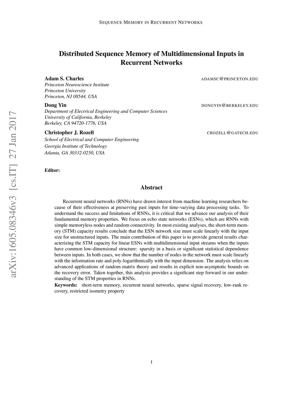 Distributed Sequence Memory of Multidimensional Inputs in Recurrent