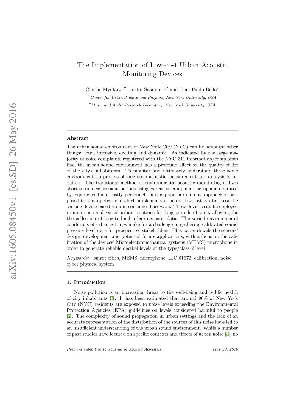 The Implementation of Low-cost Urban Acoustic Monitoring Devices