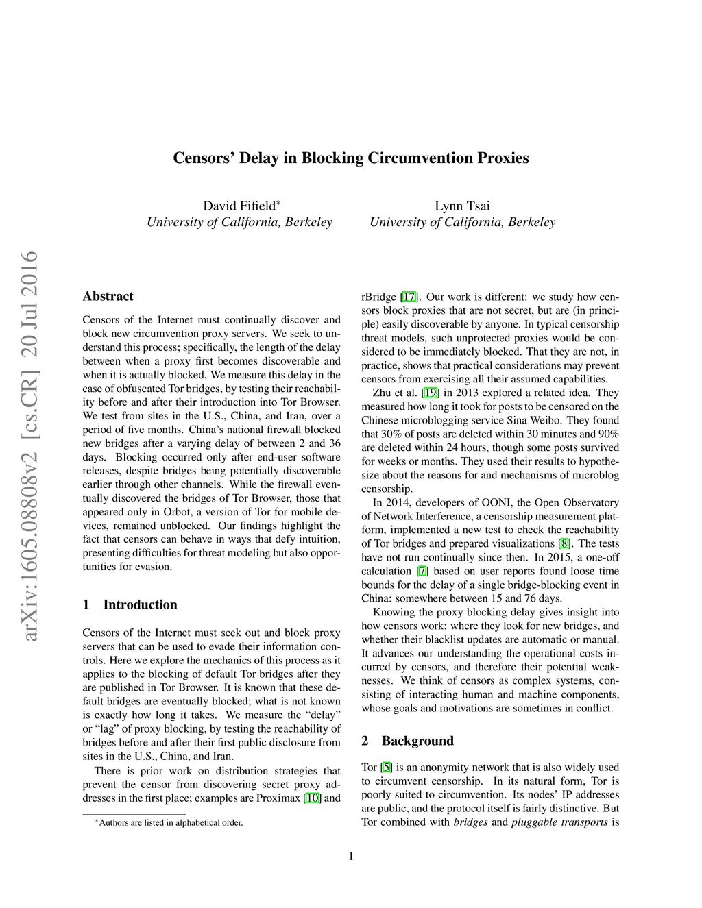 Censors of the Internet must continually discover and block new circumvention proxy servers. We seek to understand this process; specifically, the length of the delay between when a proxy first becomes discoverable and when it is actually blocked. We measure this delay in the case of obfuscated Tor bridges, by testing their reachability before and after their introduction into Tor Browser. We test from sites in the U.S., China, and Iran, over a period of five months. China's national firewall blocked new bridges after a varying delay of between 2 and 36 days. Blocking occurred only after end-user software releases, despite bridges being potentially discoverable earlier through other channels. While the firewall eventually discovered the bridges of Tor Browser, those that appeared only in Orbot, a version of Tor for mobile devices, remained unblocked. Our findings highlight the fact that censors can behave in ways that defy intuition, presenting difficulties for threat modeling but also opportunities for evasion.