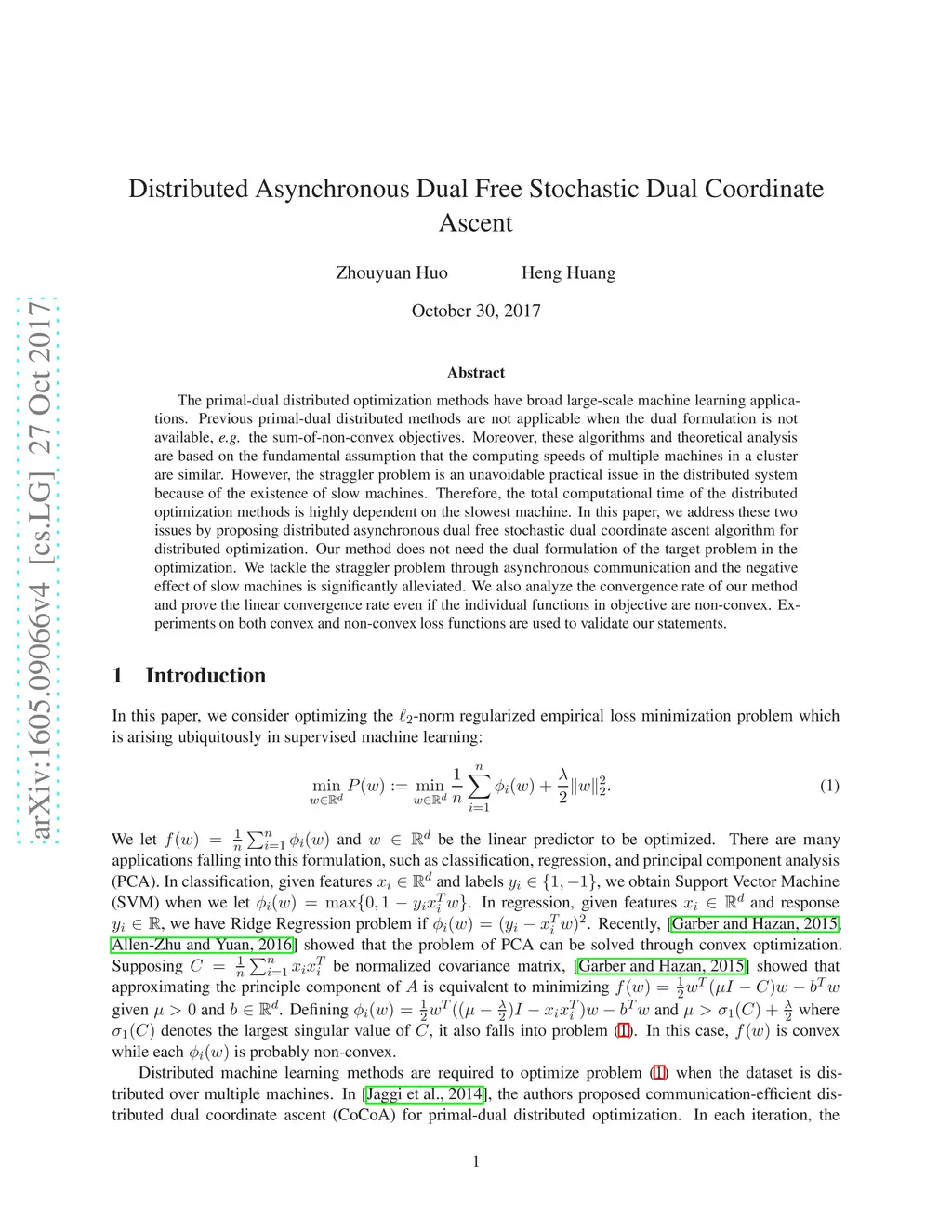 Distributed Asynchronous Dual Free Stochastic Dual Coordinate Ascent
