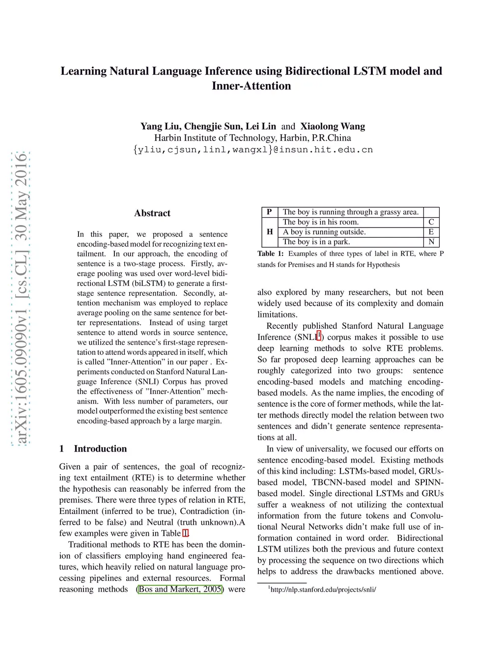 Learning Natural Language Inference using Bidirectional LSTM model and