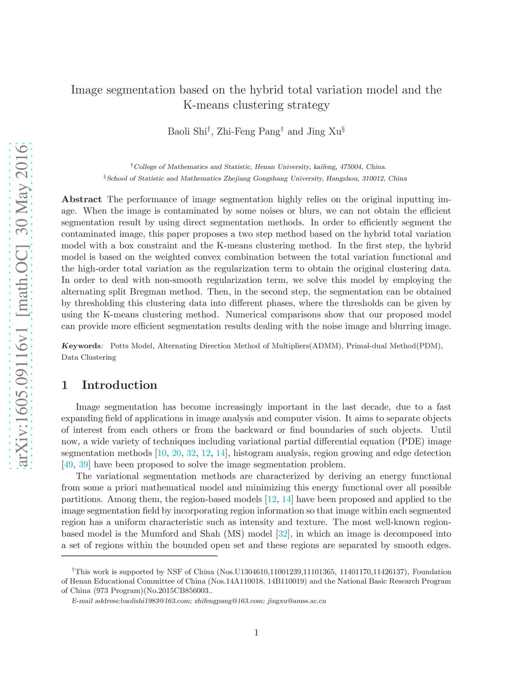 Image segmentation based on the hybrid total variation model and the