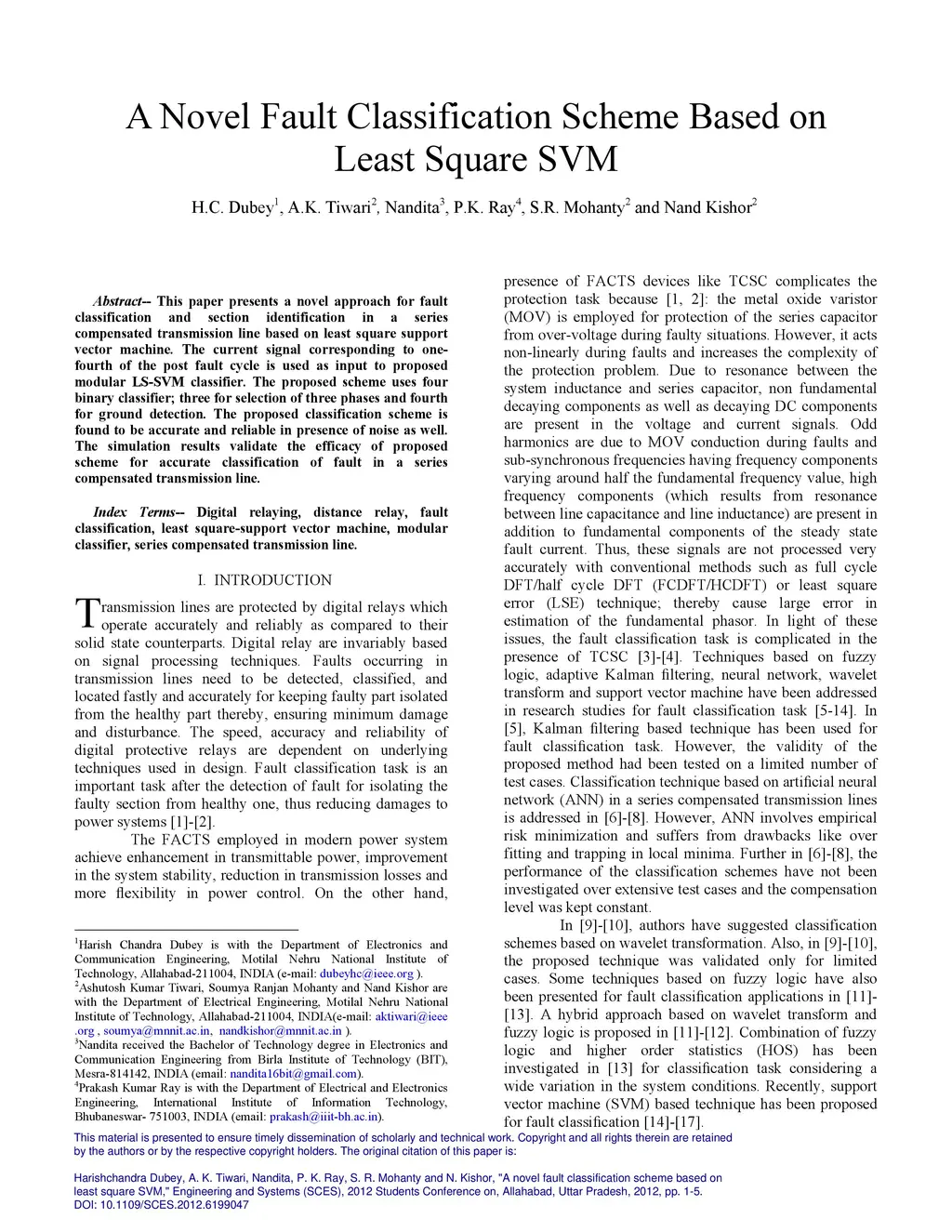 A Novel Fault Classification Scheme Based on Least Square SVM