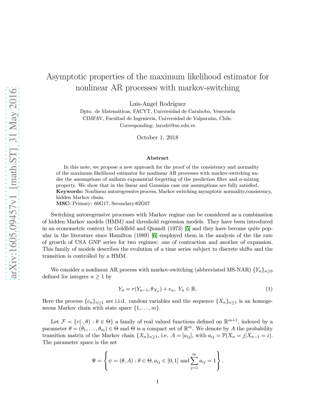 Asymptotic properties of the maximum likelihood estimator for nonlinear