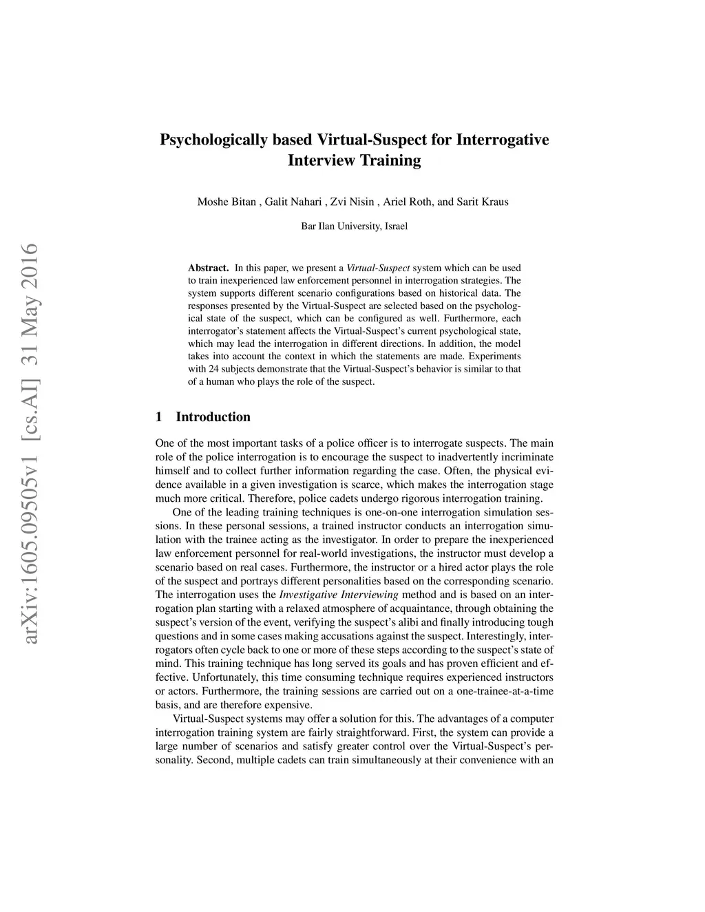 Psychologically based Virtual-Suspect for Interrogative Interview