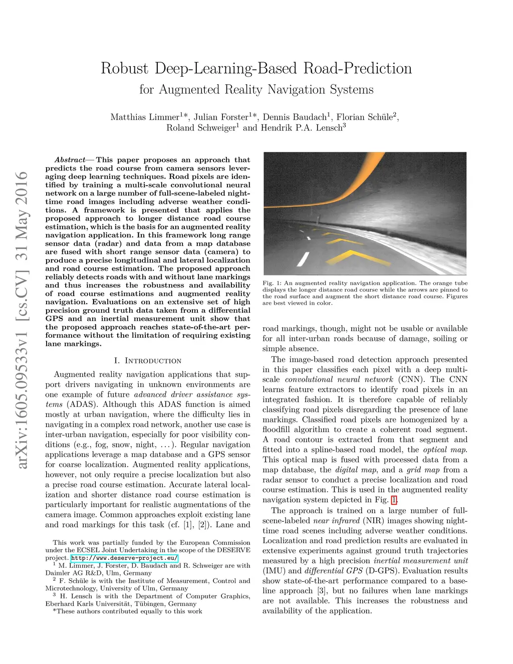 Robust Deep-Learning-Based Road-Prediction for Augmented Reality