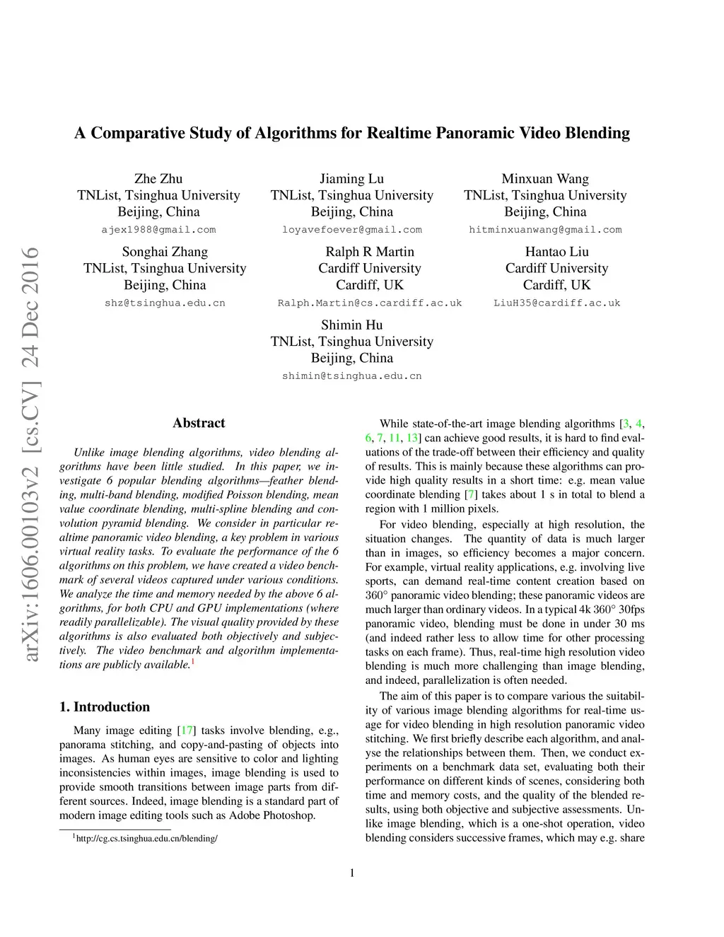 A Comparative Study of Algorithms for Realtime Panoramic Video Blending