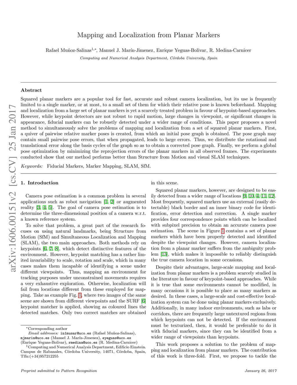 Squared planar markers are a popular tool for fast, accurate and robust camera localization, but its use is frequently limited to a single marker, or at most, to a small set of them for which their relative pose is known beforehand. Mapping and localization from a large set of planar markers is yet a scarcely treated problem in favour of keypoint-based approaches. However, while keypoint detectors are not robust to rapid motion, large changes in viewpoint, or significant changes in appearance, fiducial markers can be robustly detected under a wider range of conditions. This paper proposes a novel method to simultaneously solve the problems of mapping and localization from a set of squared planar markers. First, a quiver of pairwise relative marker poses is created, from which an initial pose graph is obtained. The pose graph may contain small pairwise pose errors, that when propagated, leads to large errors. Thus, we distribute the rotational and translational error along the basis cycles of the graph so as to obtain a corrected pose graph. Finally, we perform a global pose optimization by minimizing the reprojection errors of the planar markers in all observed frames. The experiments conducted show that our method performs better than Structure from Motion and visual SLAM techniques.