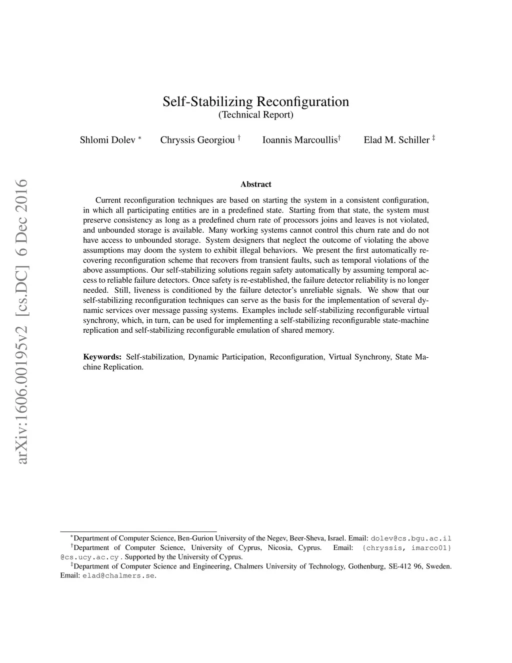 Current reconfiguration techniques are based on starting the system in a consistent configuration, in which all participating entities are in their initial state. Starting from that state, the system must preserve consistency as long as a predefined churn rate of processors joins and leaves is not violated, and unbounded storage is available. Many working systems cannot control this churn rate and do not have access to unbounded storage. System designers that neglect the outcome of violating the above assumptions may doom the system to exhibit illegal behaviors. We present the first automatically recovering reconfiguration scheme that recovers from transient faults, such as temporal violations of the above assumptions. Our self-stabilizing solutions regain safety automatically by assuming temporal access to reliable failure detectors. Once safety is re-established, the failure detector reliability is no longer needed. Still, liveness is conditioned by the failure detector's unreliable signals. We show that our self-stabilizing reconfiguration techniques can serve as the basis for the implementation of several dynamic services over message passing systems. Examples include self-stabilizing reconfigurable virtual synchrony, which, in turn, can be used for implementing a self-stabilizing reconfigurable state-machine replication and self-stabilizing reconfigurable emulation of shared memory.