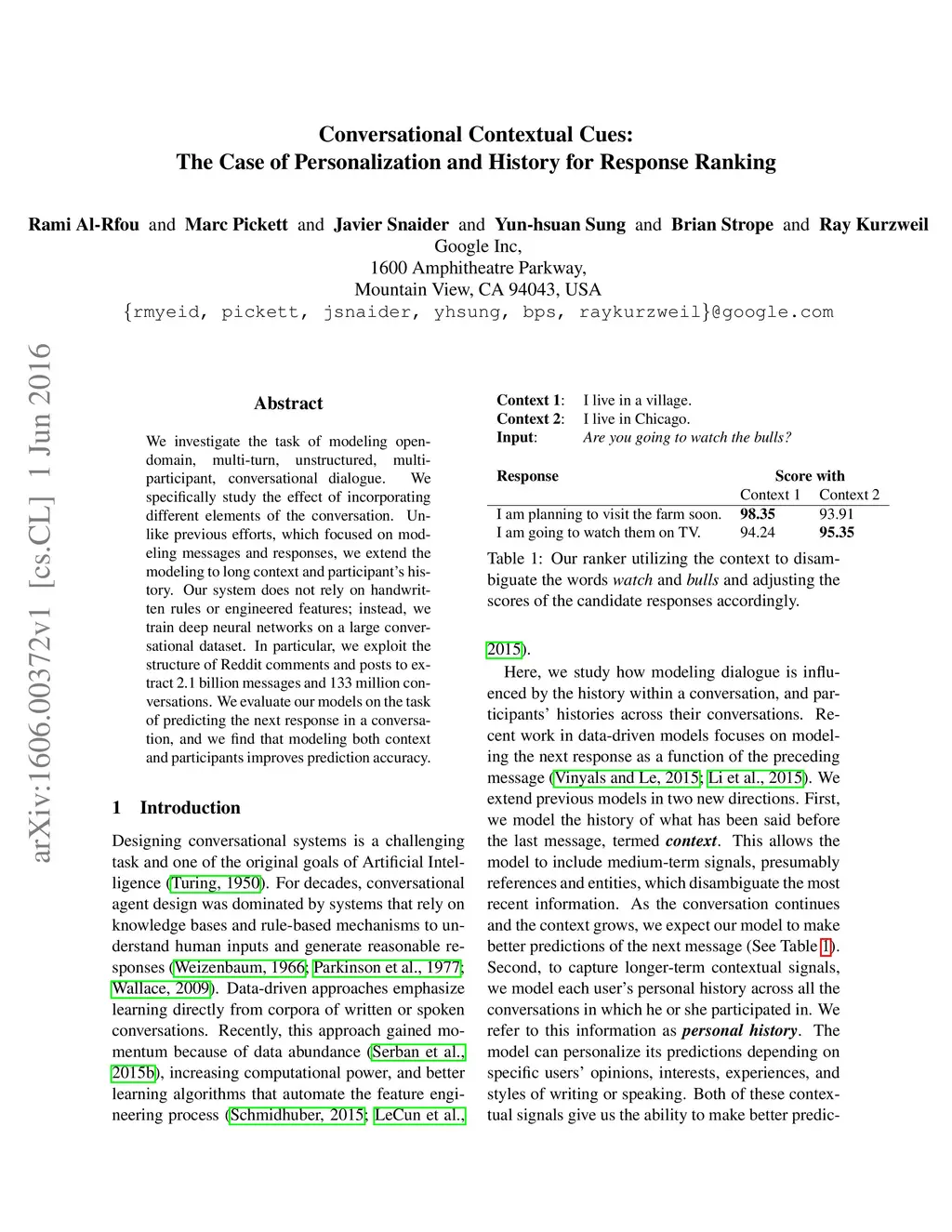 Conversational Contextual Cues: The Case of Personalization and History