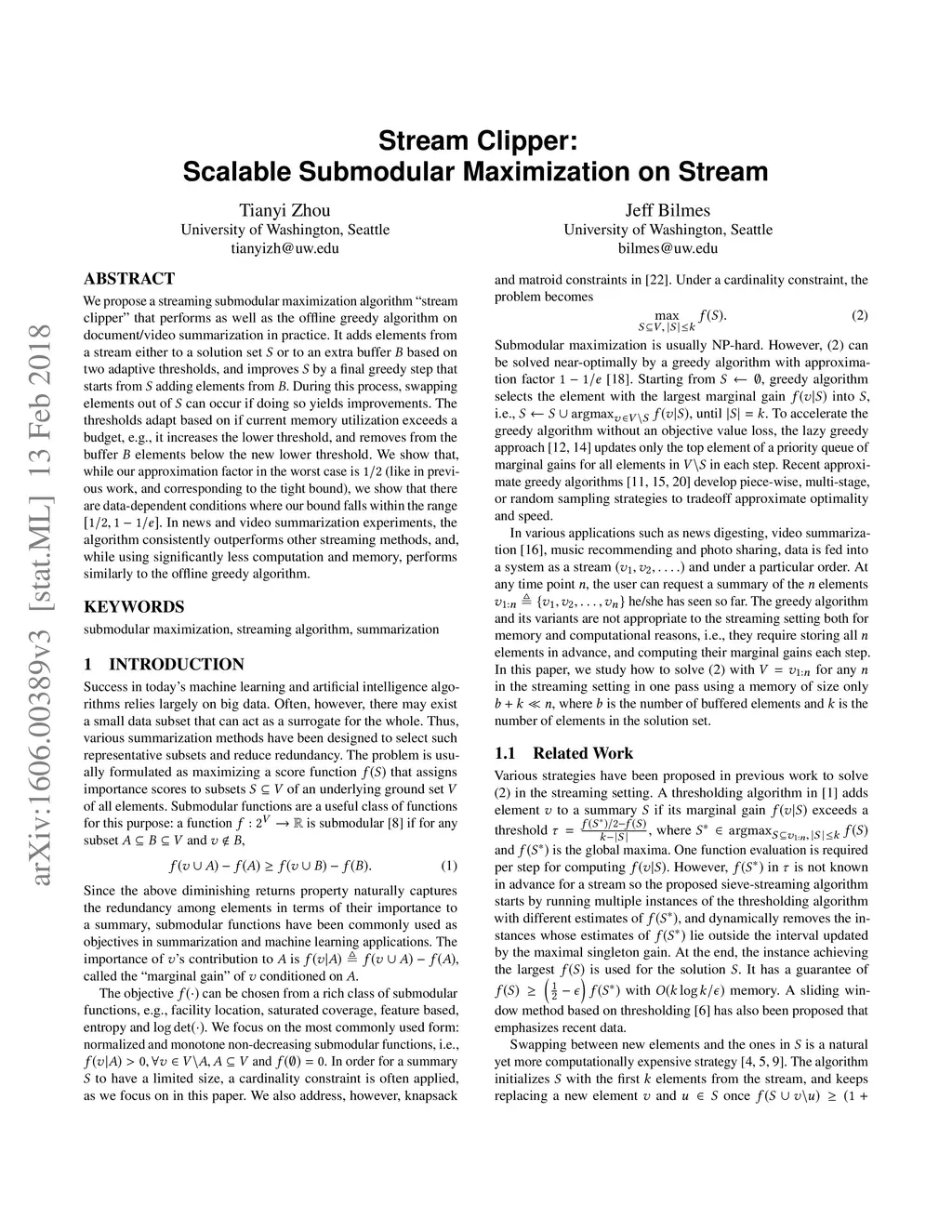 Stream Clipper: Scalable Submodular Maximization on Stream