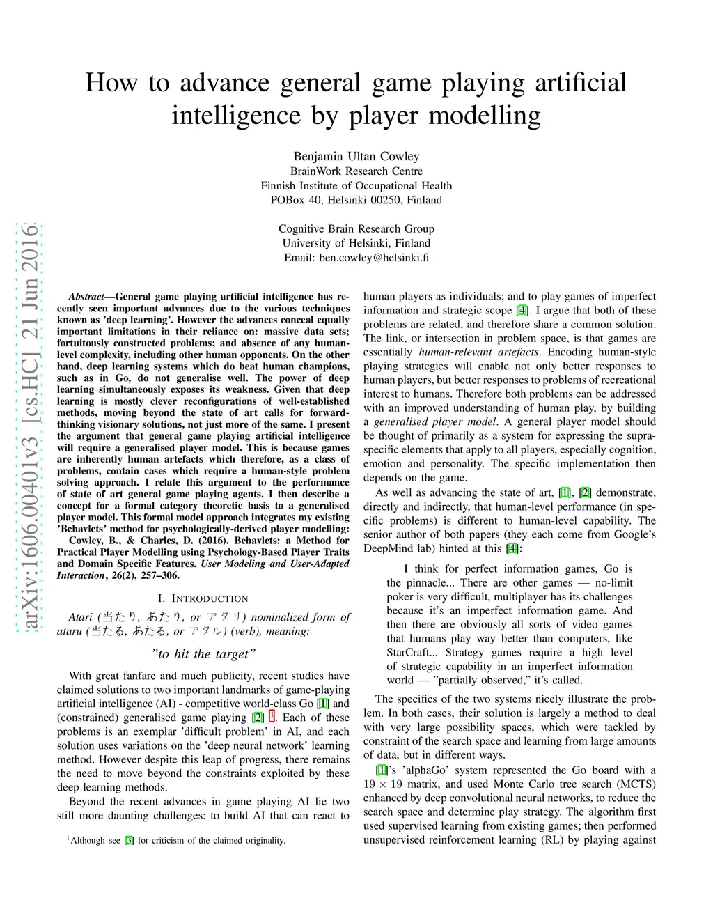 General game playing artificial intelligence has recently seen important advances due to the various techniques known as 'deep learning'. However the advances conceal equally important limitations in their reliance on: massive data sets; fortuitously constructed problems; and absence of any human-level complexity, including other human opponents. On the other hand, deep learning systems which do beat human champions, such as in Go, do not generalise well. The power of deep learning simultaneously exposes its weakness. Given that deep learning is mostly clever reconfigurations of well-established methods, moving beyond the state of art calls for forward-thinking visionary solutions, not just more of the same. I present the argument that general game playing artificial intelligence will require a generalised player model. This is because games are inherently human artefacts which therefore, as a class of problems, contain cases which require a human-style problem solving approach. I relate this argument to the performance of state of art general game playing agents. I then describe a concept for a formal category theoretic basis to a generalised player model. This formal model approach integrates my existing 'Behavlets' method for psychologically-derived player modelling: Cowley, B., Charles, D. (2016). Behavlets: a Method for Practical Player Modelling using Psychology-Based Player Traits and Domain Specific Features. User Modeling and User-Adapted Interaction, 26(2), 257-306.