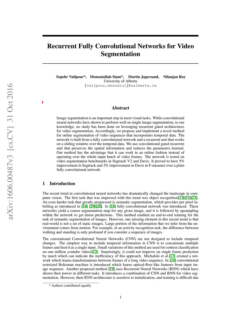Recurrent Fully Convolutional Networks for Video Segmentation