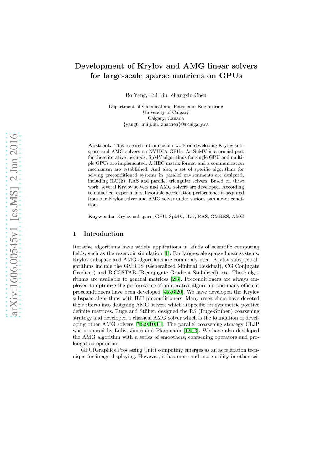 Development of Krylov and AMG linear solvers for large-scale sparse