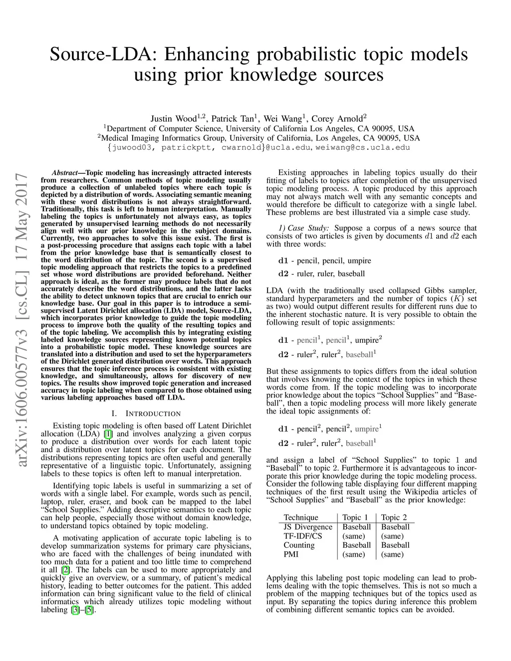 Source-LDA: Enhancing probabilistic topic models using prior knowledge