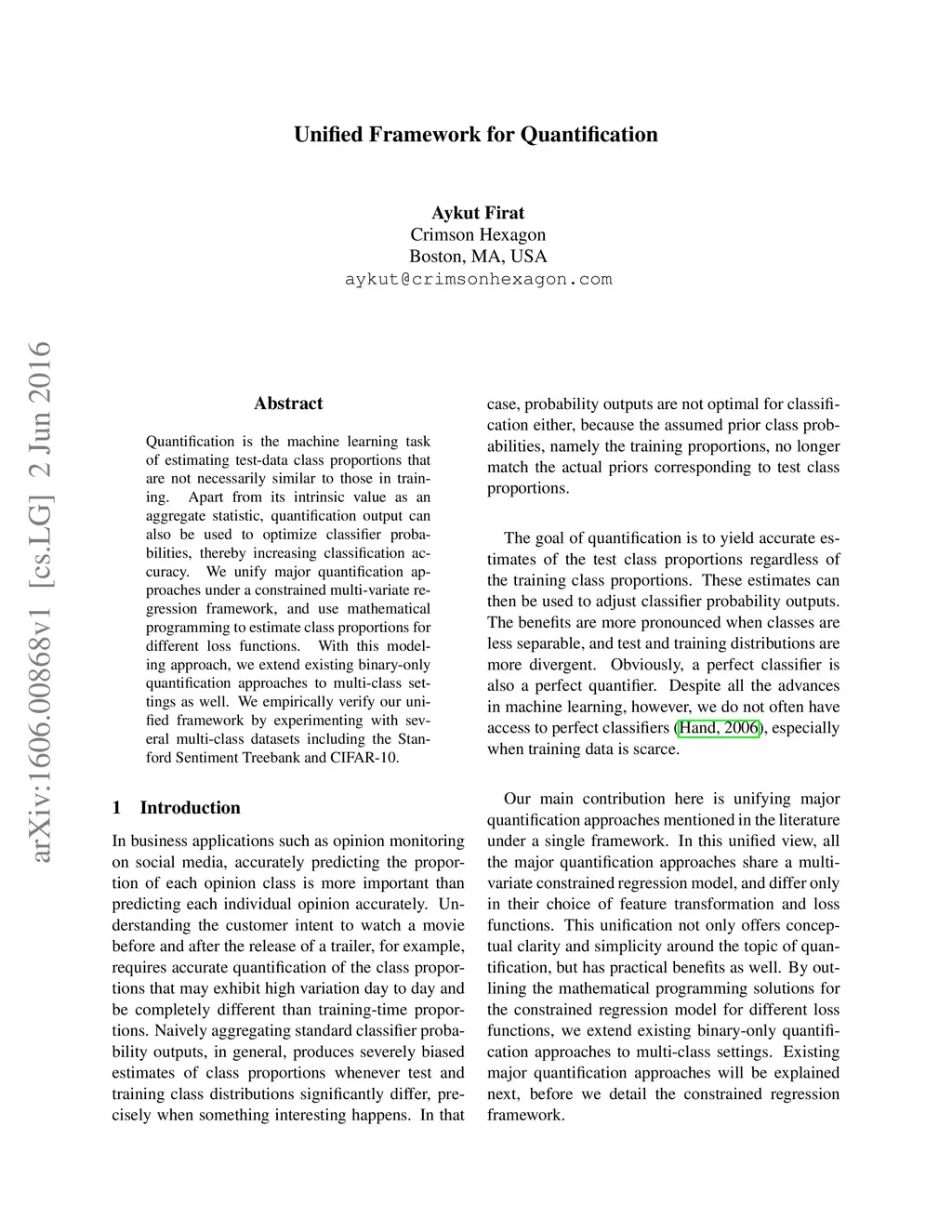 Quantification is the machine learning task of estimating test-data class proportions that are not necessarily similar to those in training. Apart from its intrinsic value as an aggregate statistic, quantification output can also be used to optimize classifier probabilities, thereby increasing classification accuracy. We unify major quantification approaches under a constrained multi-variate regression framework, and use mathematical programming to estimate class proportions for different loss functions. With this modeling approach, we extend existing binary-only quantification approaches to multi-class settings as well. We empirically verify our unified framework by experimenting with several multi-class datasets including the Stanford Sentiment Treebank and CIFAR-10.